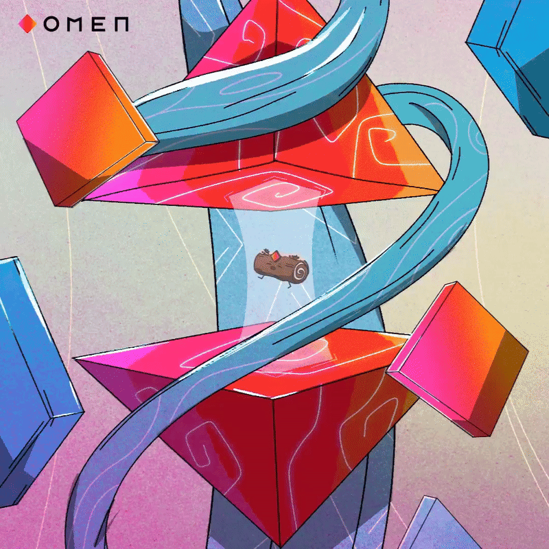 Instead of a single raffle, I turned the giveaway into a mini interactive story: a small OMEN yule log had to travel across a large illustrated landscape inspired by OMEN products (PC, keyboard, etc.) to reach the OMEN Tempest and stay cool.